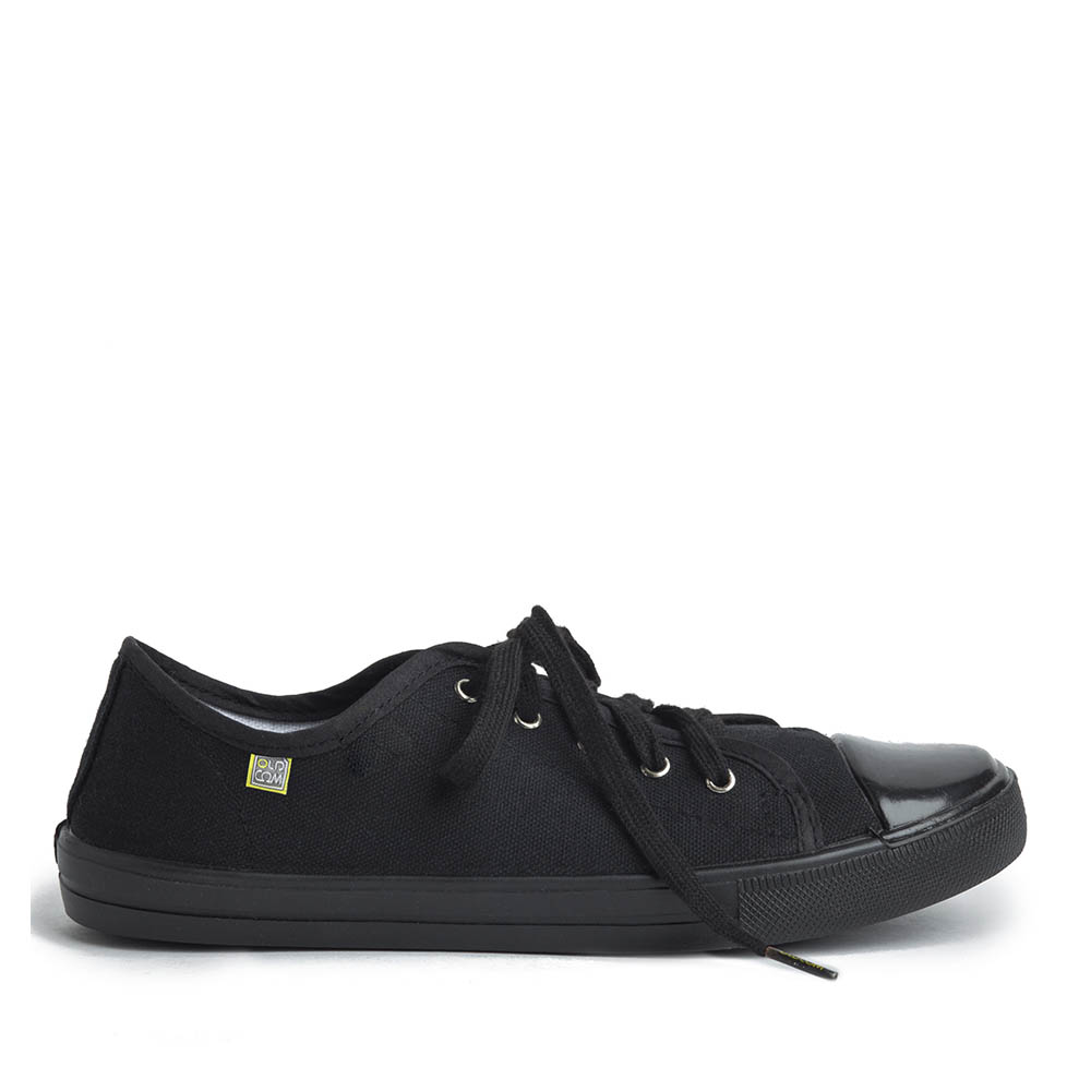 Sneakers are made from textile materials with a durable PVC sole.