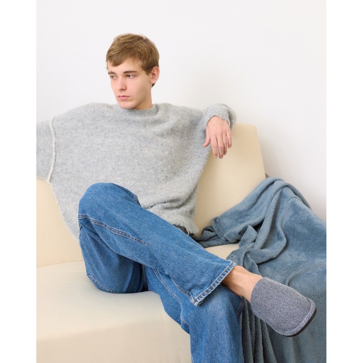 Papuci de cameră CRUZ, confecționați din material textil, cu talpă din PVC. Comozi, călduroși, cu un design minimalist, perfecti pentru momentele de relaxare acasă.